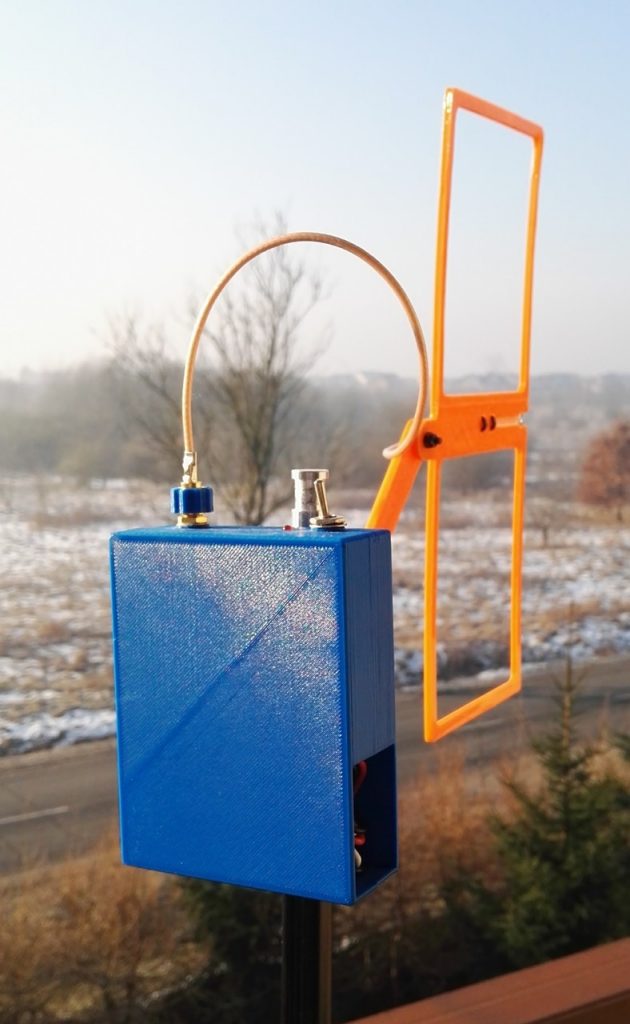 How it will behave in real life is still unknown. For now, I've designed 3D printed frame for 433MHz Moxon rectangle (0.8mm copper wire and RG316 antenna cable) with an arm and light stand clip. It can be downloaded from Thingiverse. M3x8 bolts and M3 nuts are required to attach antenna to the arm and arm to the clip. Clip base is attached to light stand with zip ties.