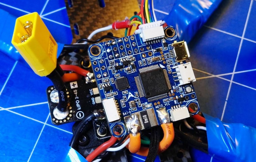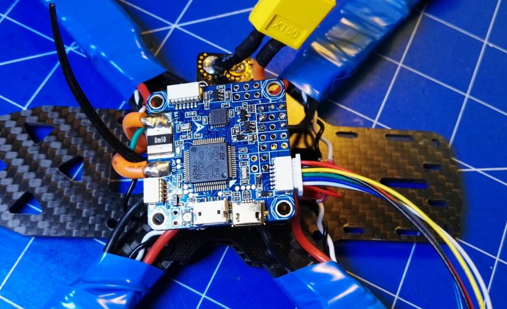 Instead of directly connecting XT60 plug to PDB, + first goes to current meter on Omnibus F4 Pro and then goes back to PDB. Not pretty, but works. I still have to design some kind for power plug holder, but this topic can wait. I still have no FPV camera - I had some problems with ESCs. Not only I've destroyed Motor1 soldering pad, but failed to flash FVT Littlebee 30A with latest BLHelli. Bootloader survived, but BLHeli was gone. I have to connect ESC to other FC and then reflash. I wonder if it was hardware or software issue...