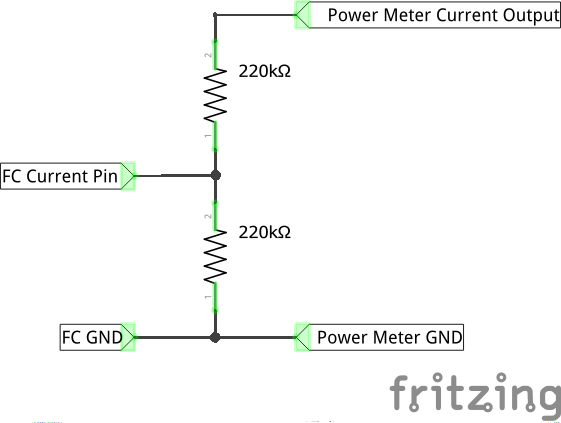 Like I mentioned, this module outputs 5V when 90A is measured. This creates a problem. All STM32F3 boards runs 3.3V. While they might be 5V tolerant, analog inputs will not accept 5V!. This is why, we have to scale analog 0-5V to 0-3.3V or less. Or less is quite important here. 0-2.5V would do too. And 1/2 voltage divider is super simple. Just look here: