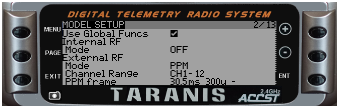 During first power-on you have to select RF protocol. It is done using sticks positions when powering Taranis up. For E010, sticks combination is as follows: