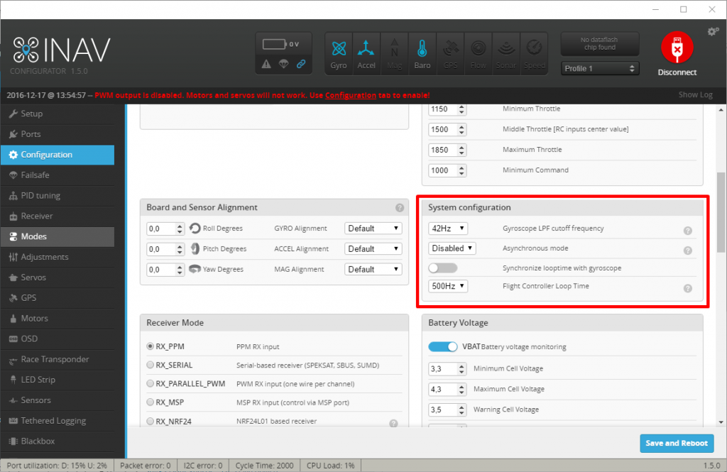 - Flight controller does not ave enough processing power to run control loop faster than 2000us (500Hz mode). This is the case for all SMT32F1 boards like Naze32, Flip32 or CC3D