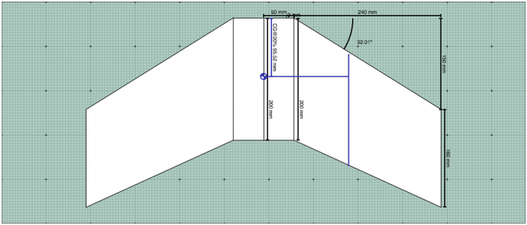 - Center of Gravity (CG) at 20% of MAC, 95mm from the nose